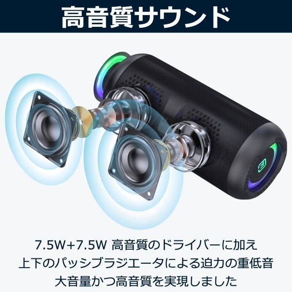 | 2 x 60mm コーン型ユニット 2 x 65mm パッシブラジエーター | |
