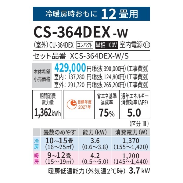 商品コード:CS-364DEX-W-SET
