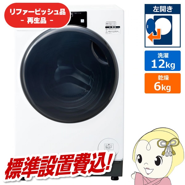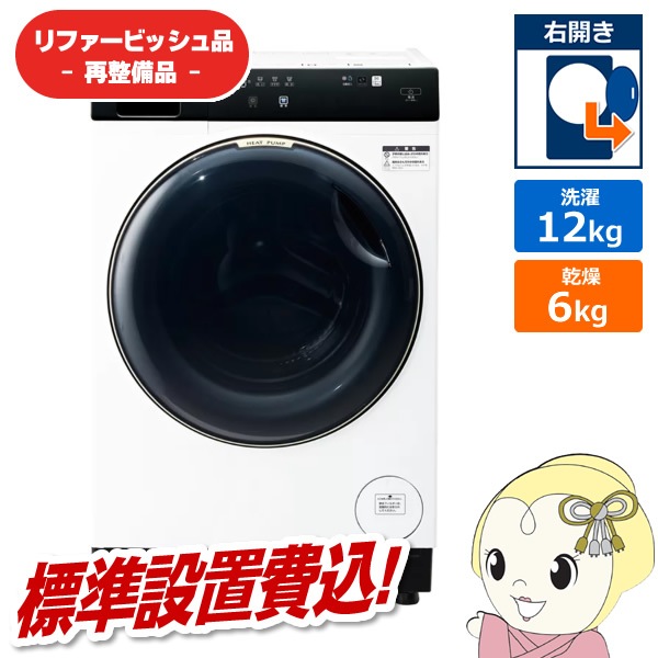 在庫あり 【リファービッシュ品/超美品】【標準設置込】アクア ドラム式洗濯機 洗濯12kg 左開き ホワイト AQW-DX12R-L-W【送料無料(北海道・沖縄・離島対応不可)】